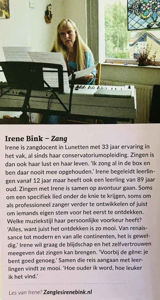 - Eigen praktijk voor zangles in Utrecht, Lunetten, sinds 1991